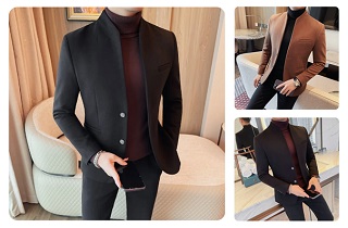 Terno Zhongshan, casual de lã grossa, gola slim fit, outono, inverno.