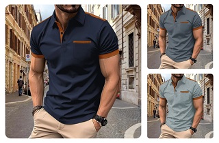 Camisa Polo casual moda verão com bolso, algodão, confortável.